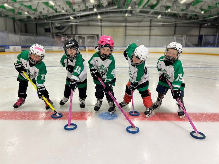 Harjoittelemme keskimäärin kaksi kertaa viikossa, ja jokainen treeni on seikkailu jäällä. Opettelemme luistelun ja ringeten perustaitoja, kuten: